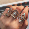 10 Pcs/set Bohemian Retro Water Drops Star Crown Crystal Gold Ring Women