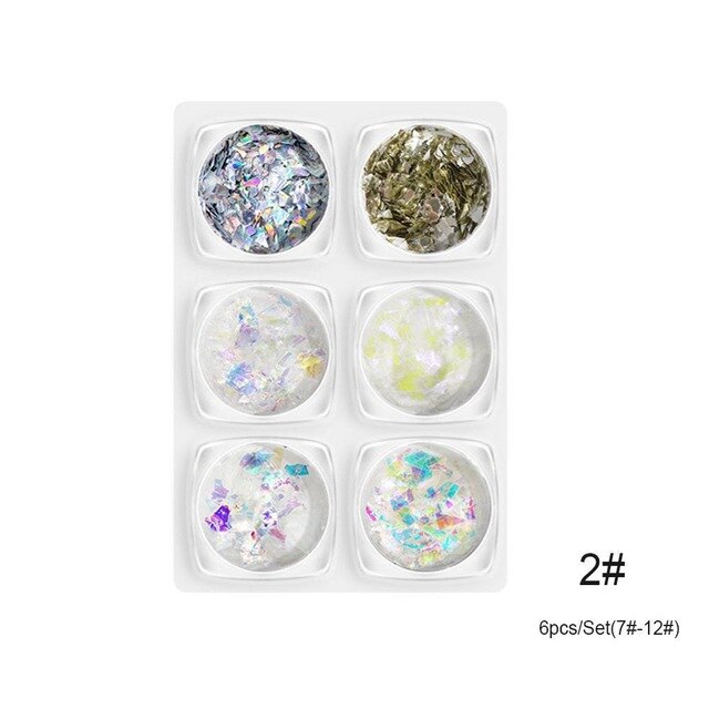 6 Pots ongles autocollants mixte Art des ongles or argent Paillette flocon feuille acrylique UV Gel 3D conseils manucure décalcomanie ensemble #280820