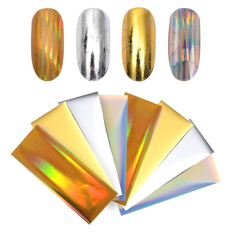 8Pcs Laser Starry Nail Foils Holographic Gold Silver Nail Stickers Paper Decals Manicure Nail Art Decorations 4*10cm