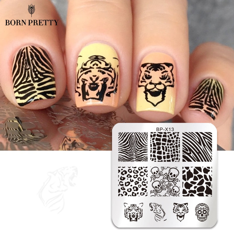 BORN PRETTY Stamp Print Stencils for Nails 6*6cm Square Nail Art Stamping Plates Template Animal Design Skull Image Plate BP-X13