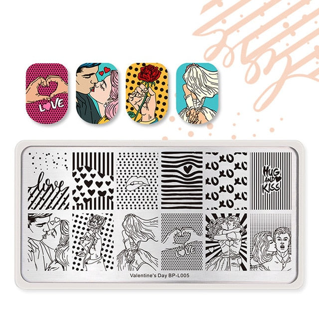 BORN PRETTY Valentine's Day Nail Stamping Plate Rose Flower Love Rectangle Template Nail Art Image Plate