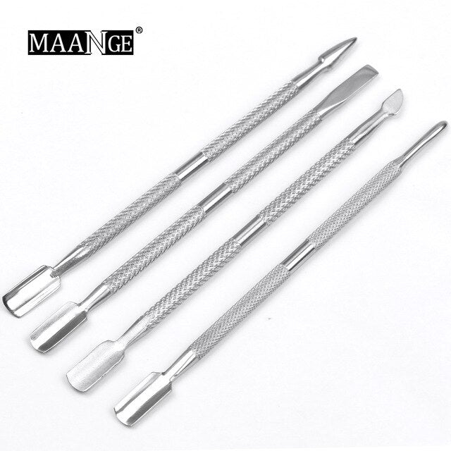 MAANGE 1/4 pièces Pro Nail Art acier inoxydable exfoliant Double tête peau cuticule poussoir extracteur enlèvement visage soins de la peau outils