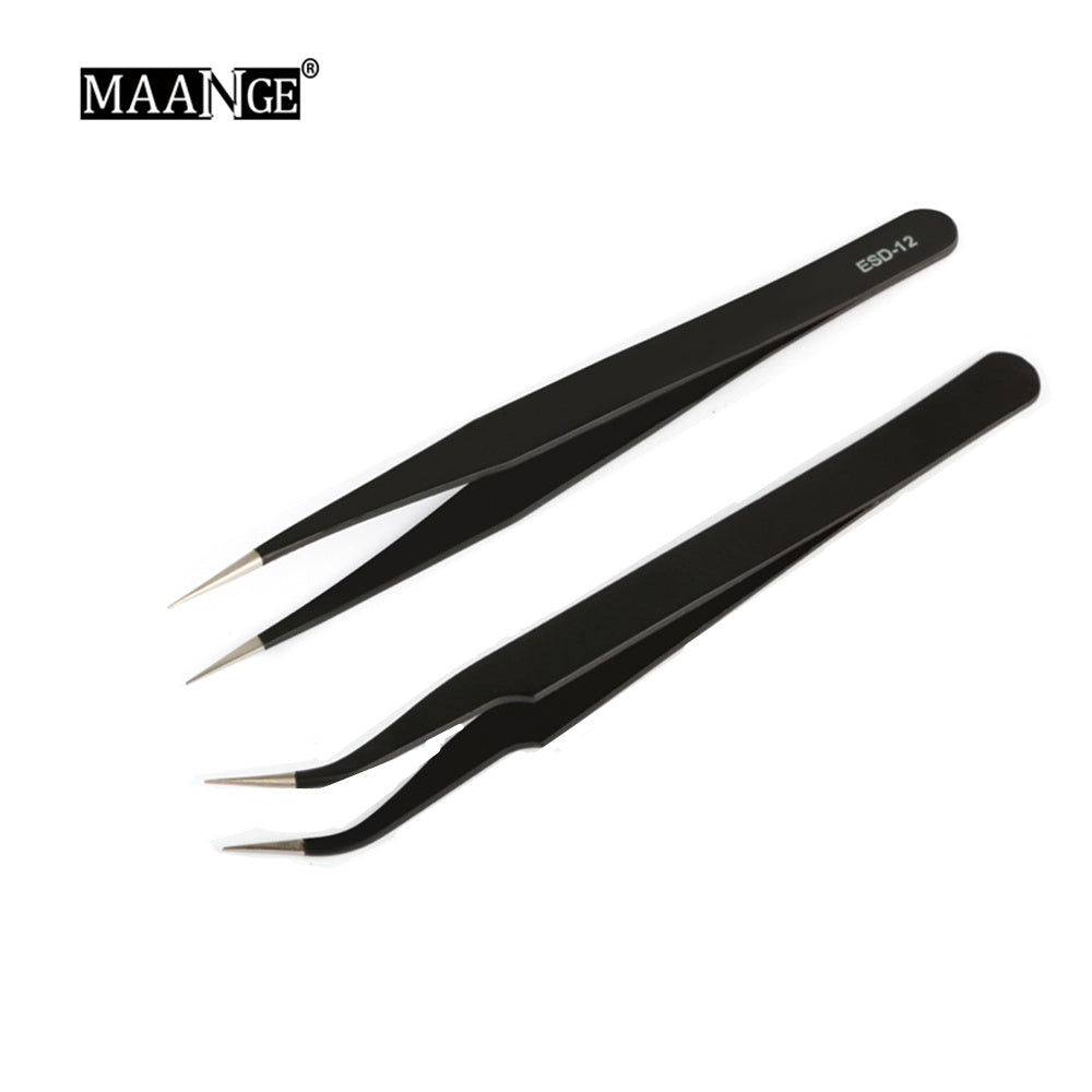 MAANGE 1 pièces Nail Art Gel acrylique outil de cueillette strass gemme décor noir pince à cils antistatique bricolage pince à main pince à épiler