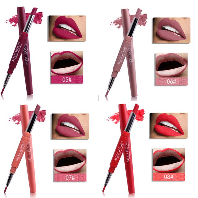MISS ROSE 4pcs/set Double-end Lip Makeup Lipstick Pencil Profissional Tint Sexy Red Lip Stick Beauty Matte Liner Pen Lipstick