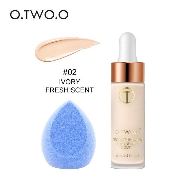 O.TWO.O Matte Liquid Foundation Makeup Base Primer Face Cream Full Cover Concealer With Makeup Sponge Blender Makeup Set